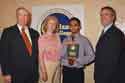 photos_1/p_50.jpgTrustees George Thompson (l.) and Mary Faughnan (r.) and Professor Christopher Hartley (far r.) pose with Vishal Thapa, recipient of the Trustees’ Award for Excellence in Writing.
